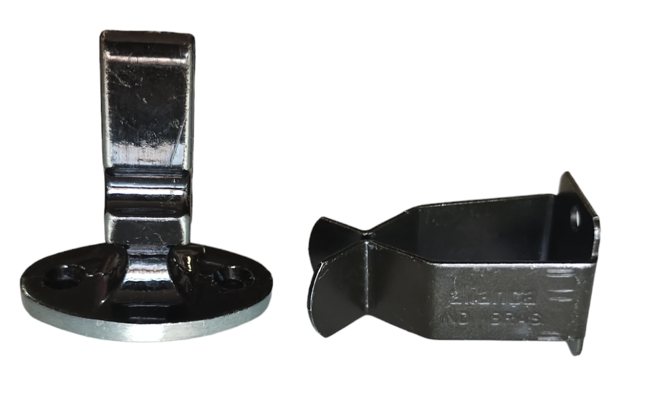 Fixador ou prendedor de ferro pintado, indicado para portas internas, externas e banheiros, pode ser instalado no rodapé, azuleijo ou na parede.