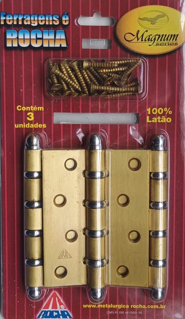 CARTELA COM 3 DOBRADIÇAS LA COLONIAIS COM 4 ANÉIS DE ROLAMENTO E 24 PARAFUSOS 100% LATÃO
