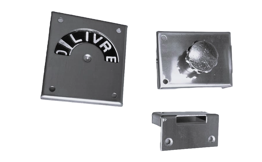 TRANQUETA OU FECHADURA UEME LIVRE/OCUPADO CROMADO PARA BANHEIROS PÚBLICOS OU COLETIVOS.